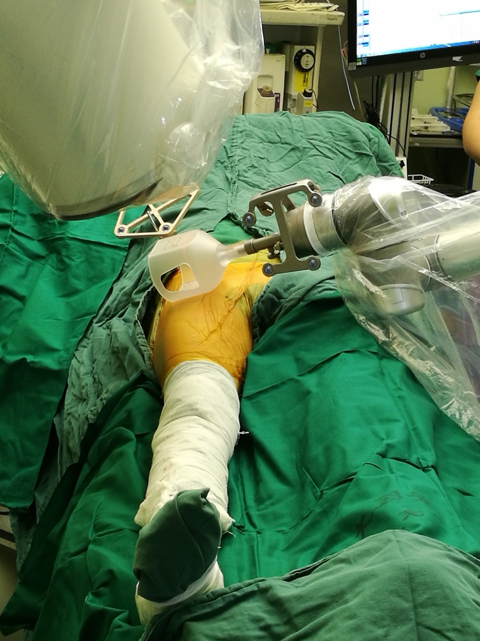 近日,我院创伤骨科病区王刚主任团队利用“天玑”骨科机器人成功为一名股骨头坏死患者施行“机器人导航辅助微创股骨头病灶清除减压+游离腓骨移植术”,患者术后恢复良好,已顺利出院。