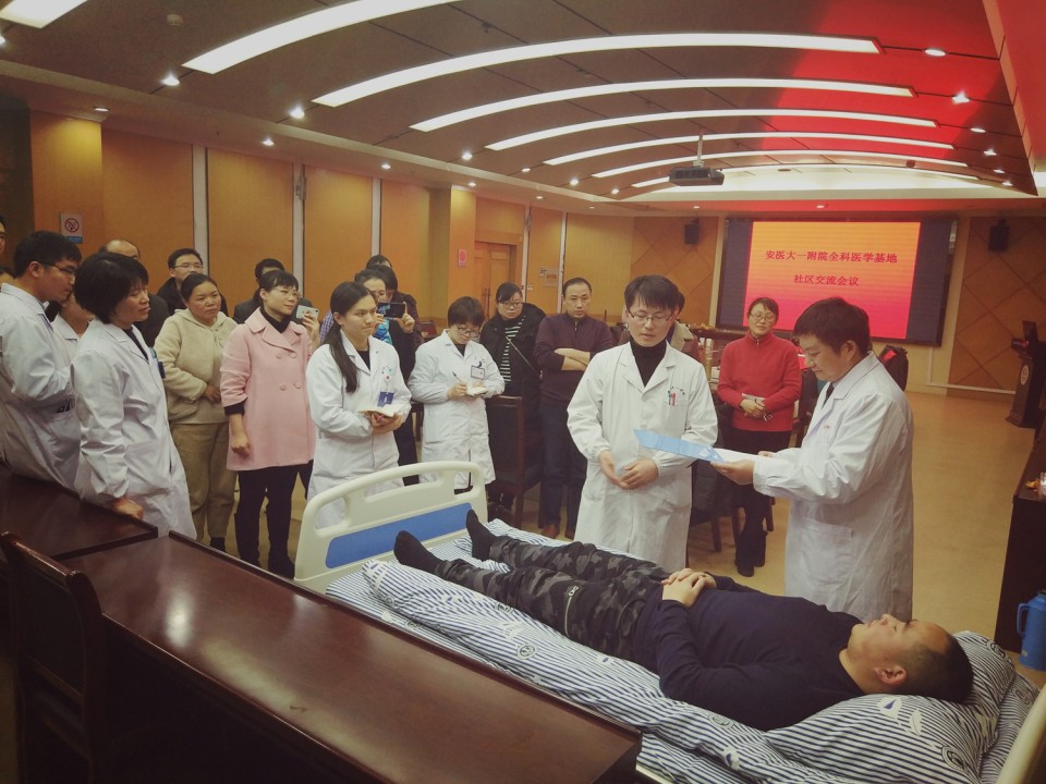 本次会议特别邀请了蚌医一附院全科医学科梁冰主任重点解读了基层实践基地评估指标要点、实践基地存在的主要问题、提升基层实践基地综合能力的建议等内容,并就“如何规范进行教学查房”作现场示范。李洁华主任做总结讲话,她指出,希望大家通过今天的学习学有所获、学有所用,共同做好全科医生的规培工作。(全科医学科 黄荣彩)