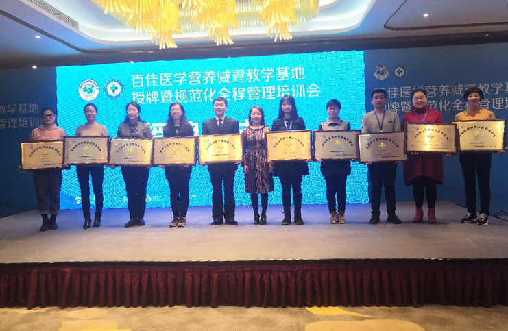 由中国医促会营养与代谢管理分会发起,在全国范围内遴选一百家医学营养减重教学基地,我院入围,并于12月13日至15日,在由中国医促会营养与代谢管理分会主办的“百佳医学营养减重教学基地”授牌暨规范化全程管理培训会上正式授牌。