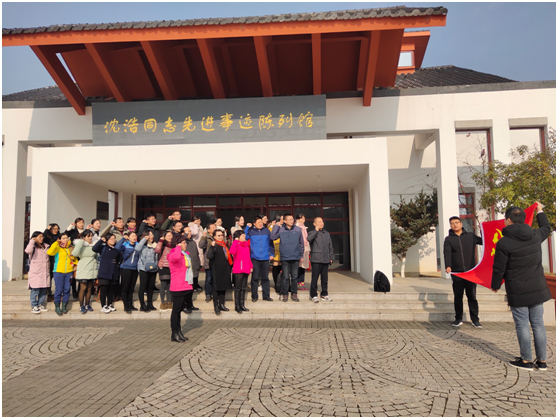 参观结束后,在沈浩同志先进事迹陈列馆前,党员面对鲜红的党旗,在支部书记杜华同志的领誓下庄严宣誓,重温入党誓词。