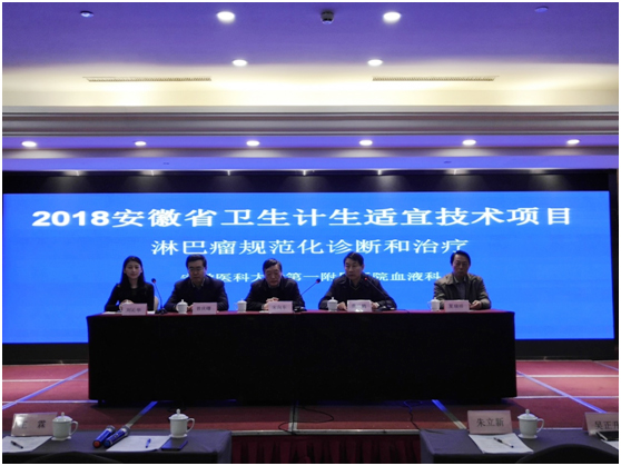 为全面落实卫生计生适宜技术推广工作,提高县级公立医院医疗技术水平,由安徽省卫生计生委批准、安医大一附院血液科主办的“淋巴瘤规范化诊断和治疗”培训班于2018年11月18日上午在合肥市举行,省卫计委科教处处长宋向东、副院长费广鹤出席开幕式,血液内科科主任夏瑞祥教授致开幕辞。会议由我院血液内科刘沁华副主任医师主持,30余家县级医院70余人参加了此次培训。副院长费广鹤对血液科开展“淋巴瘤规范化诊断和治疗”作出了充分的肯定,表示医院将全力支持适宜技术推广工作,并对技术推广的持续发展提出了合理化建议。
