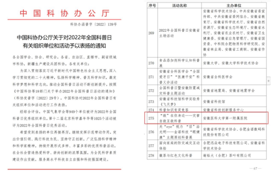 2022年12月22日,我院开展的“‘救’在你身边——灾害自救互救科普”系列科普活动被中国科协办公厅评为2022年全国科普日优秀活动。