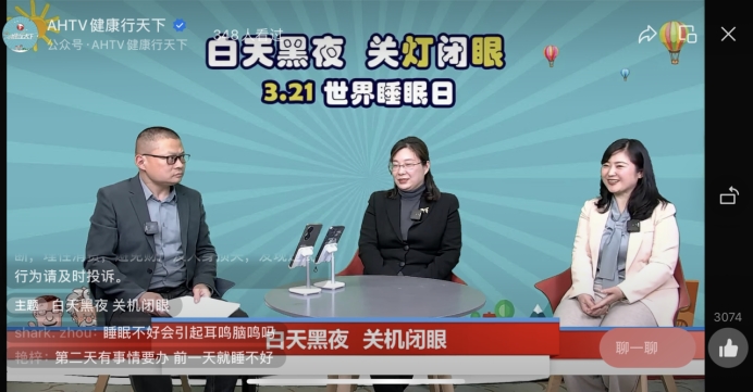 同时,医院联合安徽省广播台《空中医院》、安徽电视台《健康行天下》、安徽卫视ATV客户端等,进行了三场健康科普互动直播,通过一系列宣传活动,让公众深刻认识到了心理健康应该从良好的睡眠开始,保持充足和规律的睡眠,有益身心健康。