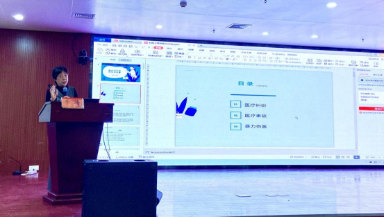 系列活动第二场,李涛以《医疗纠纷与医疗事故的防范与处理》为题作报告,涵盖三部分核心内容:医疗纠纷、医疗事故、暴力伤医。李涛从医疗纠纷产生原因、防范措施;医疗事故概念、法律构成要件;非医疗过失纠纷、医疗意外常见临床表现形式;医疗事故的预防与处置等方面做了详尽讲解。针对处理医疗纠纷的民事诉讼的时效、医疗损害赔偿诉讼的举证责任分配等方面,旁征博引,用一件件鲜活的医疗法律案例,提醒医务工作者要警钟长鸣。以及面对暴力伤医事件,教导大家从法律行政责任、民事责任、刑事责任角度应该如何应对,为医务人员提供了一系列法律防范武器。
