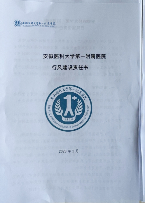 为深入学习贯彻党的二十大精神和习近平新时代中国特色社会主义思想,落实国家卫生健康委、国家中医药局《关于印发全国医疗机构及其工作人员廉洁从业行动计划(2021-2024年)的通知》,根据医院2023年“医德师德与学术诚信教育月”和“优质服务月”活动安排,医务处组织临床医技科室签订《安徽医科大学第一附属医院行风建设责任书》。