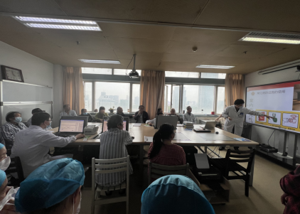 4月28日下午,科室组织在院患者及家属进行消防安全知识学习及消防安全器械操练,提高患者安全防范意识,全体医患织密“安全网”,努力创造平安医疗环境。