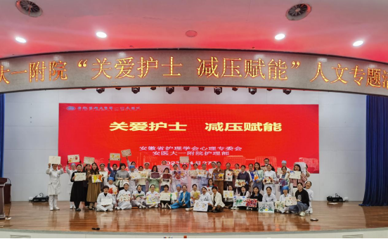 4月27日下午,护理部在内科医技楼四楼会议中心举办了主题为“关爱护士 减压赋能”的人文活动,活动邀请了安徽省护理学会心理专委会的主任委员郭琼和高级绘画心理治疗师甄茂芬老师,她们采用了沉浸式体验工作坊的模式,通过授课、绘画、冥想、分享等环节设计,在愉快轻松的氛围中,让参与者全身心地投入、探索,开启心与心的交流。经过引导,大家非常坦诚地分享了在绘画过程中感知到的自身压力和困扰,觉察到对压力的释放与缓解,感悟到问题解决的倾向,同时也对未来生活仍充满期待和憧憬。