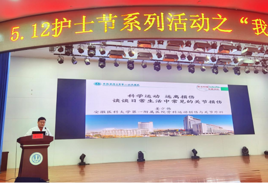 5月6日下午,护理部举办了“我运动 我健康”专场知识讲座。院工会领导到会并讲话,表达了工会组织对护士群体的关心与支持。活动内容包括安徽省警官职业学院钱玉想教授《关注健康科学运动》,以及安医大一附院运动创伤与关节镜外科医生姜少伟《科学运动避免损伤——谈谈日常生活中常见的关节损伤》的精彩授课。通过现场演示、互动,结合大量的实例图片让观众了解了运动的类型与强度、计划与实施、如何避免损伤,以及损伤后的正确应对与处理。讲座现场还播放了护理部策划由护士参与拍摄的《我运动我健康》的视频短片,片中展示了护士的工作状态,以及护士在跑步、羽球、篮球、瑜伽、户外爬山等不同的运动场景,生动展现了护士们脱下白衣之后积极飞扬的运动风采。
