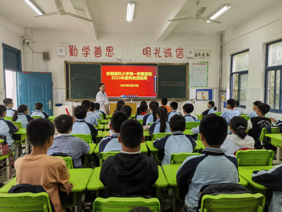 5月22日,我院眼科专家走进安医大附属小学,为孩子们带来了一场知识点满满又充满趣味的健康科普课。课堂上,眼科专家郑捷、马庆凯以“科学用眼,爱护眼睛”为题,通过生动形象的图片、视频,让孩子们了解近视形成的原因、危害及预防措施,详细讲解了如何养成良好的用眼习惯,呼吁同学们正确读写姿势、增加户外活动、均衡饮食、控制电子产品使用时间、定期检测视力。