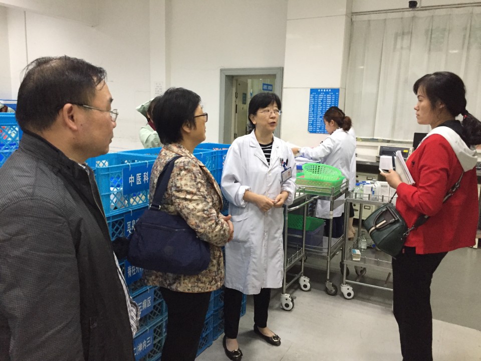 座谈会后,程主任一行三人对我科临床药学室、住院西药房、药库、绩溪路门诊药房、静脉用药调配中心等部门进行了参观走访,各部门组长结合实际工作,从工作流程、药房管理、药学服务等方面做了详细介绍。