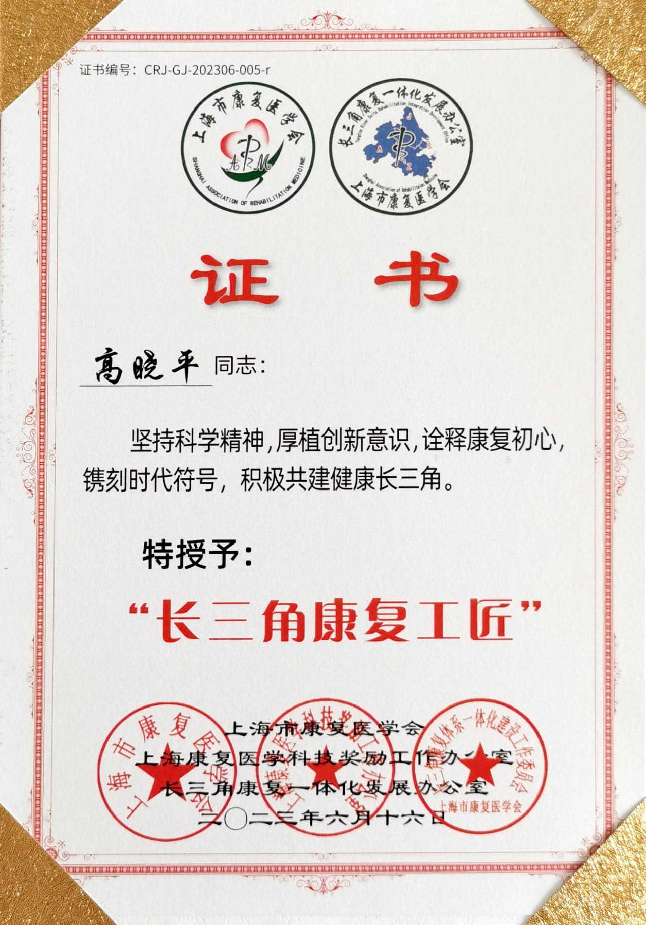 6月16日,第13届上海康复医学科技奖励大会在上海召开,我院康复医学科高晓平教授作为安徽省唯一的获奖者受邀参会并被授予“长三角康复医务工匠”称号。