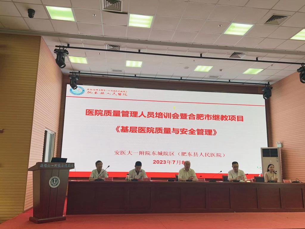 为提高精细化运营管理能力,实现效率和质量双提升,7月8日,我院东城院区质量管理科在行政培训楼四楼二号会议室,组织开展《基层医院质量与安全管理》继教班暨医院质量管理人员培训会。院区副院长韩玉龙,张修稳,院长助理、质量管理科科长黄猛,护理部主任陈红,医务科科长鲁传和出席会议。此次会议邀请医院医务处处长陈明卫教授、安医大二附院感染科主任叶郡教授授课。院区各科主任、护士长、质控医生、质控护士、医共体成员单位骨干人员等三百余人参加培训。