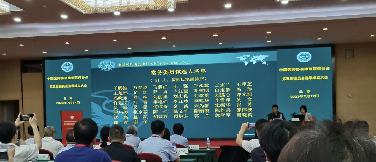 7月17日上午,中国医师协会康复医师分会第五届委员会选举成立大会在北京召开,我院康复医学科主任赵凯作为安徽省代表受邀参加。经民主投票,大会选举产生了中国医师协会康复医师分会第五届委员会常务委员和学会领导,赵凯主任当选为委员会常务委员。