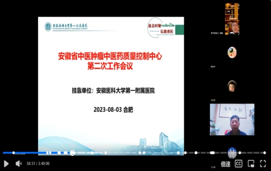 8月3日下午,安徽省中医肿瘤中医药质量控制中心2023年第二次工作会议在线上召开。会议由质控中心主任李平教授主持,北京中医药大学东方医院李泉旺教授,黑龙江中医药大学第一附属医院韩凤娟教授应邀参加。质控中心副主任张梅、张锋利,秘书苏丽,专家组成员周晋华、曾永蕾、梁惠、查名宝、魏有刚、吴福宁、刘振昌及院医疗质量管理办公室吴栋录参会。