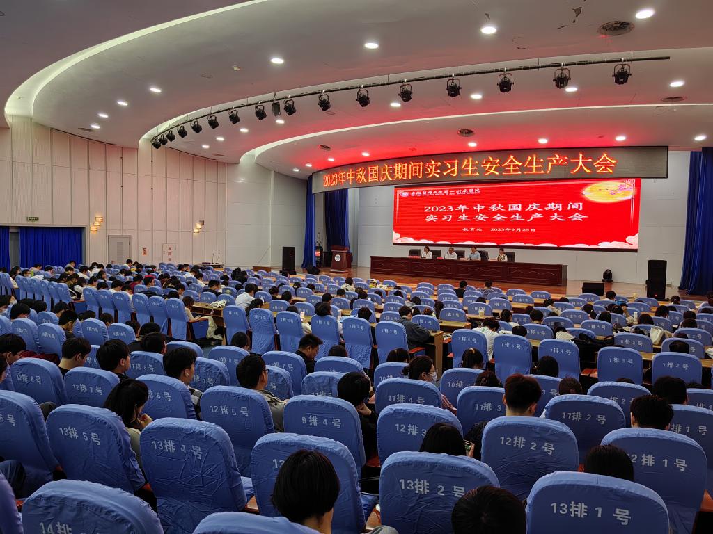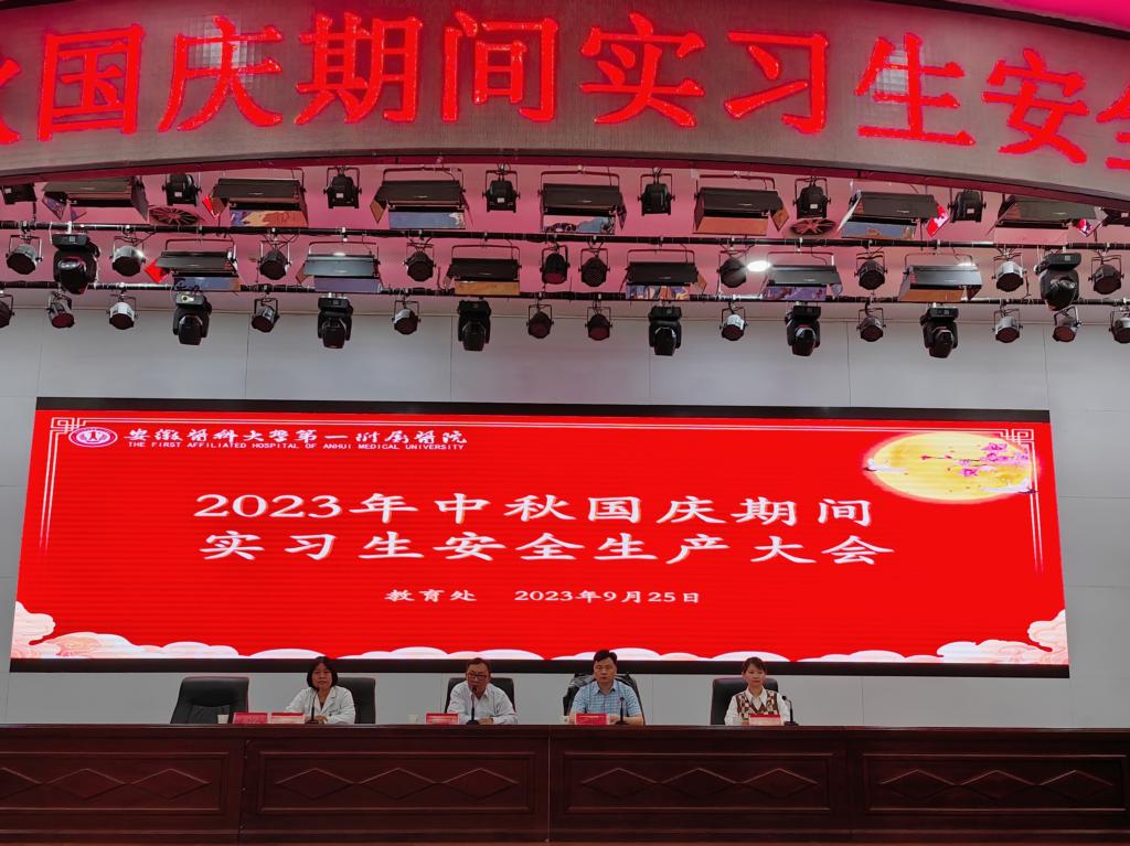9月25日晚,教育处在内科医技楼会议中心召开2023年中秋国庆期间实习生安全生产大会。第一临床医学院学生工作部副部长孙民、教育处副处长王继年、教育处工作人员、全体临床教学秘书和全体实习生参加会议。会议由临床实践教育科科长高敏主持。