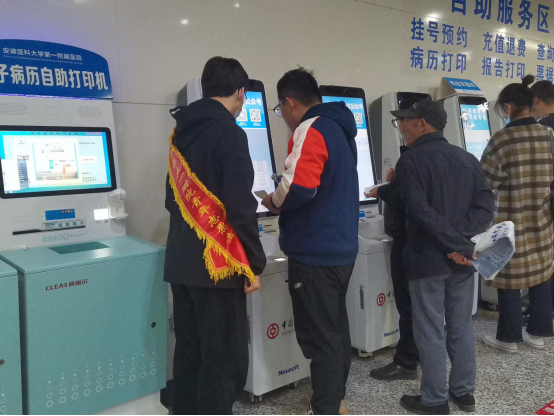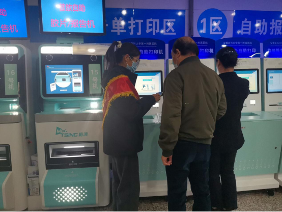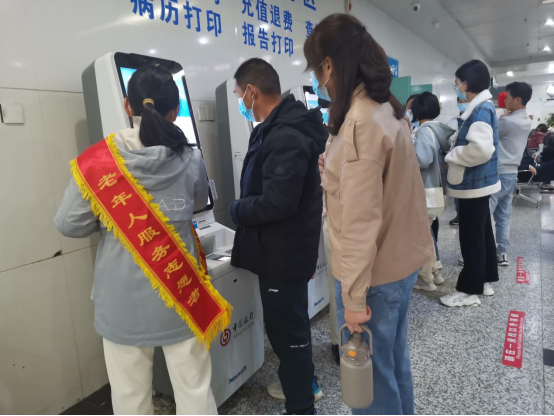 志愿者们为独自就医的中老年人、孕妇、外地游客、残障人士等提供爱心导诊志愿服务,协助不会使用自助挂号机的患者及患者家属完成挂号、缴费等程序,有效缓解了门诊高峰期的就诊压力,提升了患者就医的舒适度,改善了患者的就医体验,获得医护人员、患者及患者家属的认可。