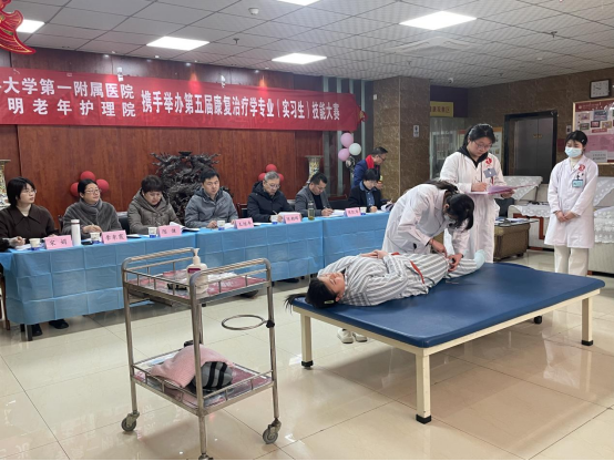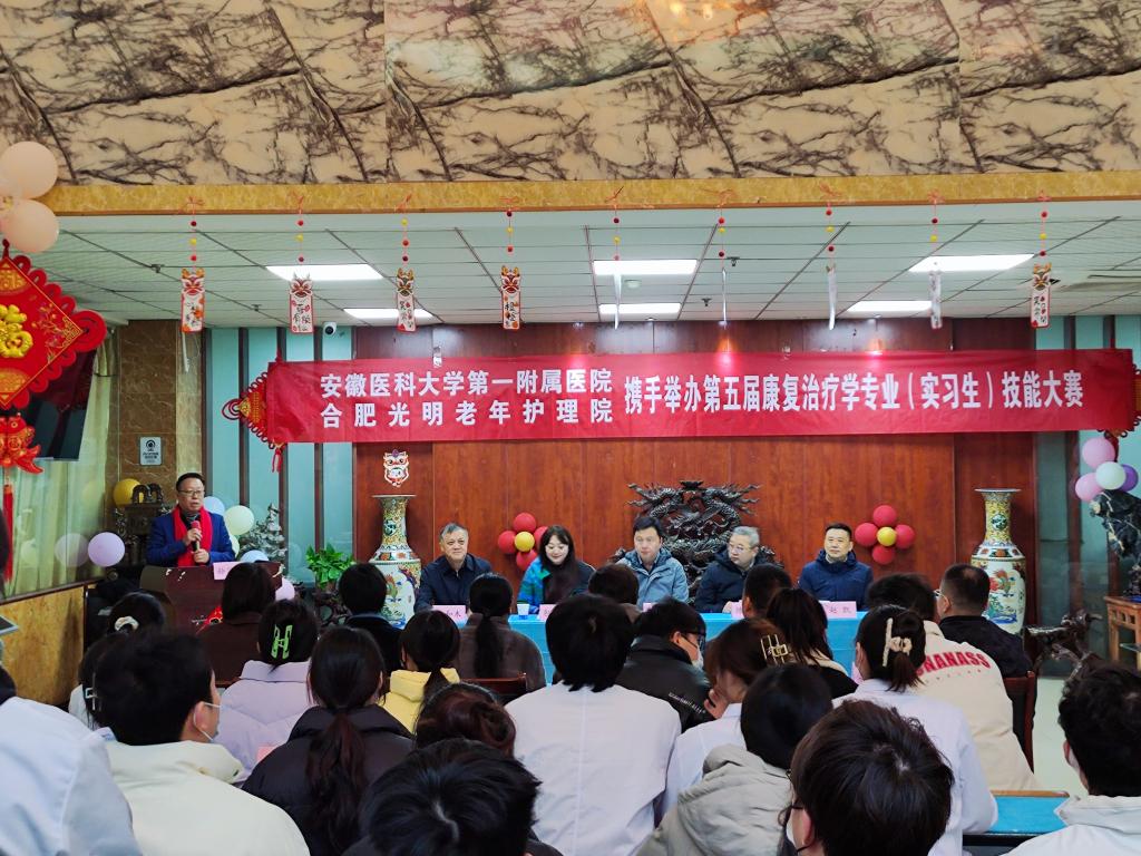 1月6日,由康复医学教研室主办的安徽医科大学第一附属医院第五届康复治疗专业(实习生)技能大赛在合肥光明老年护理院成功举办。医院教育处负责人王继年、康复医学教研室主任陈和木、康复医学科主任赵凯等参加开幕式。康复医学党支部宋娟书记代表裁判员宣誓。