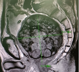 患者,石先生,78岁,8年前因排尿困难确诊为前列腺癌,前列腺体积巨大,当时考虑手术风险太大,选择了手术去势+氟他胺的治疗方案,并先后经历了阿比特龙、瑞维鲁胺+戈舍瑞林的内分泌治疗,及全身化疗等不规律的治疗,肿瘤指标PSA及排尿症状一直控制不佳。2年前因排尿明显困难接受了膀胱造瘘治疗,并出现大便也越来越困难,当地查PSA高达187ng/ml,MRI示前列腺巨大(640克),伴全身多处骨转移。根据石先生家人的回忆,老人家每次的排大便都慢长且痛苦,并开始因大便困难伴腹部胀满不敢进食。