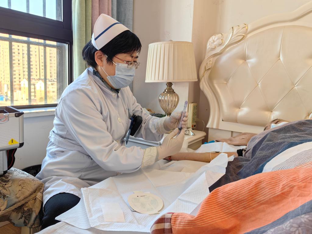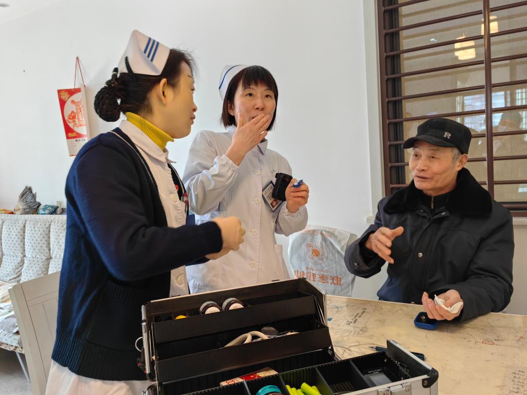 护理人员更换鞋套、做好入户前消毒工作,在吴大爷热情迎接下进门。胡少华首先向吴大爷说明了”互联网+护理服务“的背景和意义,取得了信任和配合。听取诉求后,孙小红耐心地向吴大爷讲解疾病的相关知识,并为患者做了规范化的护理操作和自我保健的相关指导,整个操作期间患者没有出现任何不适反应。吴大爷感谢道:“我的老寒腿一到冬天出门就不利索,也不会用高科技的血糖仪,儿子又在外地工作没办法带我去医院,这几天正急的不知道怎么办,儿子帮我在网上预约了网约护理服务,没想到今天一大早你们就赶到家里来了!以前每次去医院,儿子就要请假从外地赶回来,花钱不说还浪费很多时间,去了医院还要排队等很久,我们这些基础病多的老年人还怕交叉感染,感谢你们这些大医院的专业护士上门,让我们既省心又放心。”服务结束后,护士长程文君指导患者在手机端填写相关内容,并征求患者意见,旨在从老年人的角度对系统的再优化,让系统兼具智能化和人性化,更好地被患者所接受。