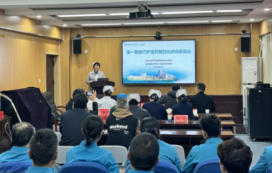 据悉,2023年12月份我院被安徽省卫健委认定为安徽省医疗护理员规范化培训基地,医院护理部高度重视医疗护理员培训工作,培训团队精心组织、缜密部署、认真筹备,依据国家卫健委医疗护理员培训大纲,制定详实可行的理论与实践方案,通过线上和线上相结合的方式,进行理论授课、技能培训、临床实践指导以及理论、技能考核,确保培训的高质量完成。