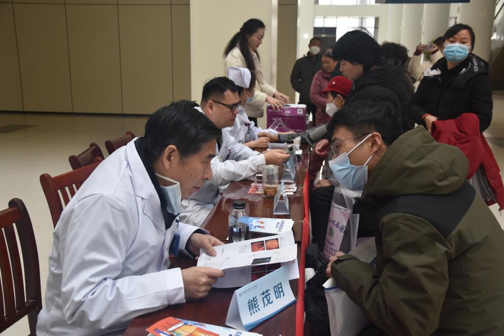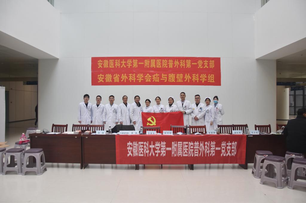 3月7日上午,由普外第一党支部、安徽省医学会疝与腹壁外科学组承办,由安徽省医学会疝与腹壁外科学组组长熊茂明教授领衔的十余位医护人员,在我院南区门诊一楼大厅开展第二届“3.7中国疝气日”义诊活动。