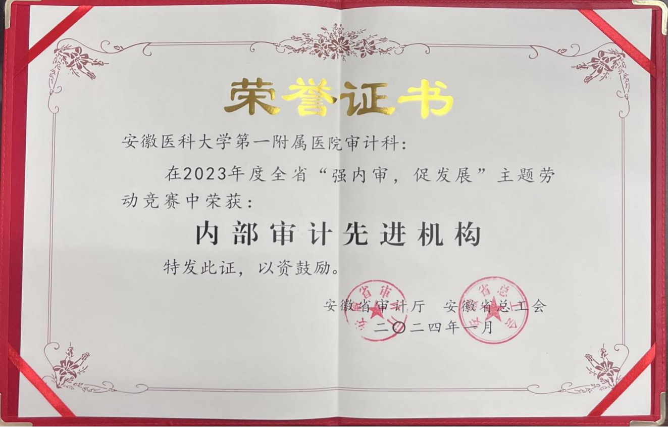 继我院审计科人员荣获“全国内部审计先进工作者”荣誉称号后,审计科再创佳绩,在省审计厅与省总工会联合举办的“强内审,促发展”主题劳动竞赛中再次获得“内部审计先进机构”光荣称号。
