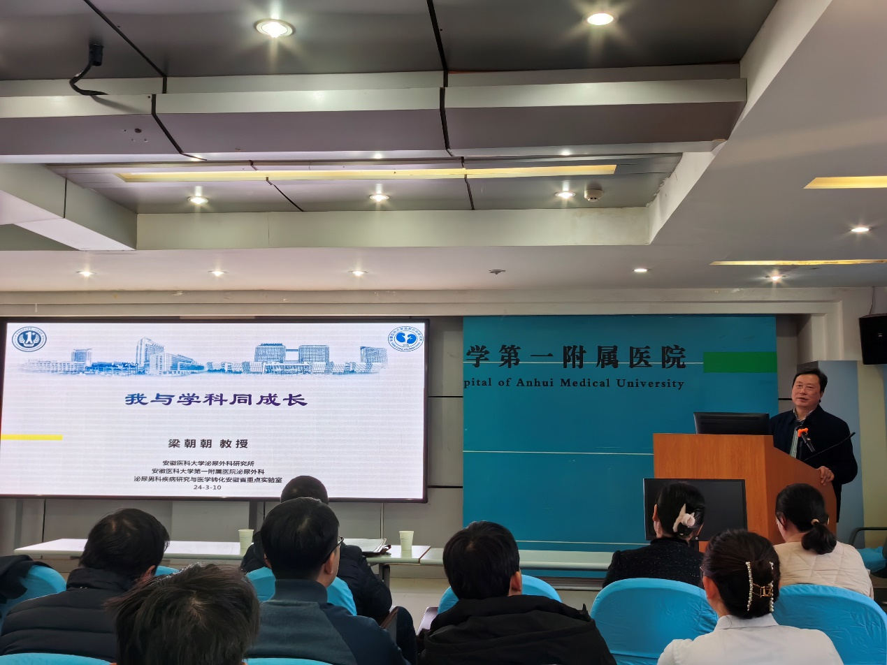 梁朝朝教授以《我与学科同成长》为主题,深入剖析了泌尿外科学科建设和人才培养的关键,并从学科建设的核心要素与深邃内涵出发,强调了团队协作意识和集体精神在塑造高效团队中的关键作用,并结合自身在汶川抗震救灾和援非抗疫的亲身经历,勉励青年医生们从高度、广度、深度、精度、温度五个维度全面提升自己。