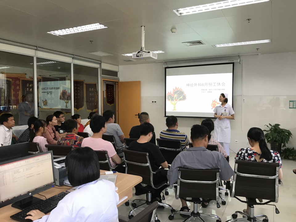 为普及患者及家属对医院火灾的认识,提高火灾救援及逃生能力,营造安全有序的医疗环境,8月26日,高新院区神经外科针对病区部分患者家属使用榨汁机、小炖锅等小家电的现象,组织了以“医院火灾的危害及预防”为主题的工休会。