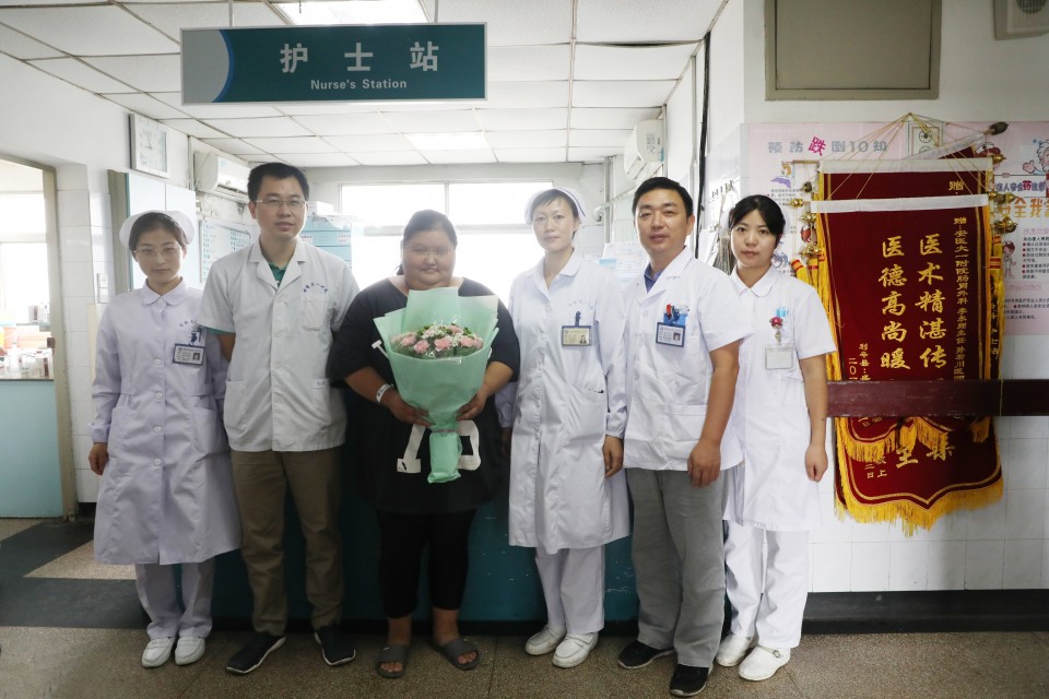 近日,我院普外胃肠外科(腔镜)成功为一名体重近300斤的患者实施“腹腔镜下胃袖状切除术”,术后患者恢复良好,已于上周出院。据悉,患者来自于合肥本地,自幼体型就偏胖,自2006年开始体重异常增长,平时饮食量同常人,但体重每年都要增长十余斤,多种减肥方案体重持续不能下降,后来就增长到了近300斤的体重。今年八月初患者在家出现头晕,视物旋转等情况,于8月19日出现进食进水后呕吐、腹泻,伴心慌乏力等,家人赶紧送来安医大一附院急诊。经过相关检查,待症状稍缓解后,因 “肥胖症、闭经、高尿酸血症、肝功能异常”收住我院内分泌科。在院测身高164cm,体重143Kg,BMI高达53.17kg/m*m,是正常人的两倍多。