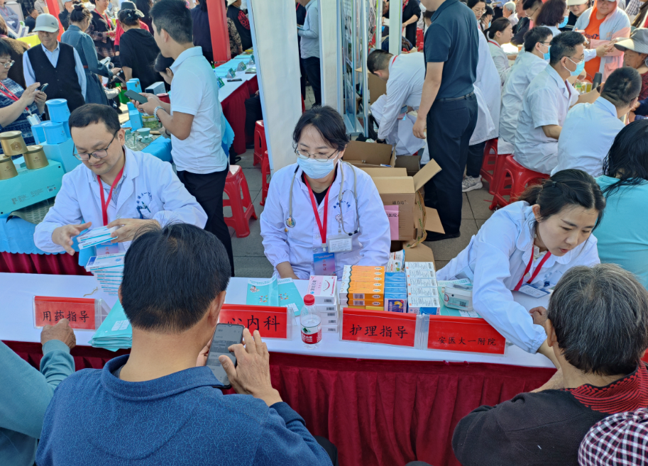 4月25日上午,2024年全国文化科技卫生“三下乡”(安徽省)集中示范活动暨“美好生活·民法典相伴”民法典宣传月启动仪式在六安市裕安区苏埠镇南楼村举行。按照省卫健委相关工作部署,我院派驻药剂科副主任医师王小华、神经内科护士长计海霞、心血管内科主治医师马东宇赴现场参加义诊活动。