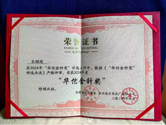 4月底,安徽省针灸学会主办、安徽中医药大学第二附属医院(安徽省针灸医院)承办,安徽省针灸学会第六次会员代表大会暨学术年会在合肥召开。针灸学领域国内知名学者、省内行业代表300余人参加会议。我院中医科孔昭遐教授荣获安徽省针灸学会“华佗金针奖”。