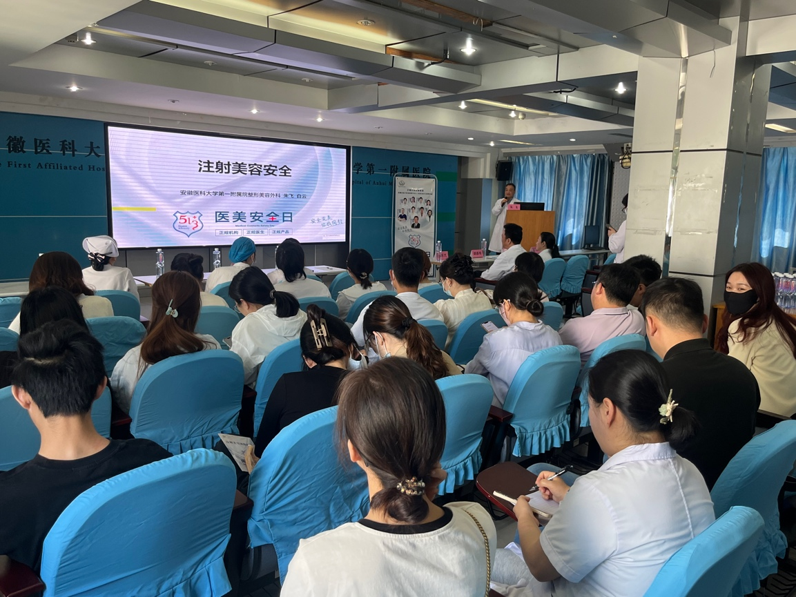 5月13日上午,由安徽省医疗美容质控中心和我院共同主办的5.13医美安全日科普活动在医院实验中心楼6楼顺利举办,主题为“正确认识注射美容”。活动由安徽省医疗美容质控中心主任、皮肤科主任王再兴主持。