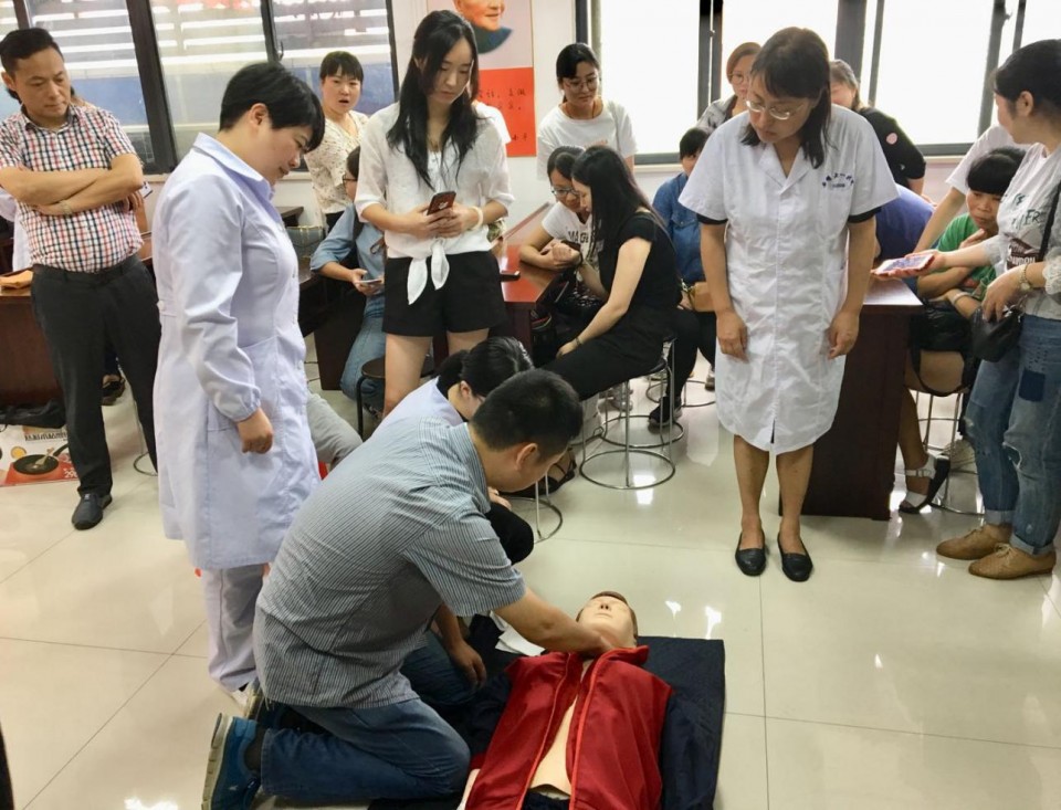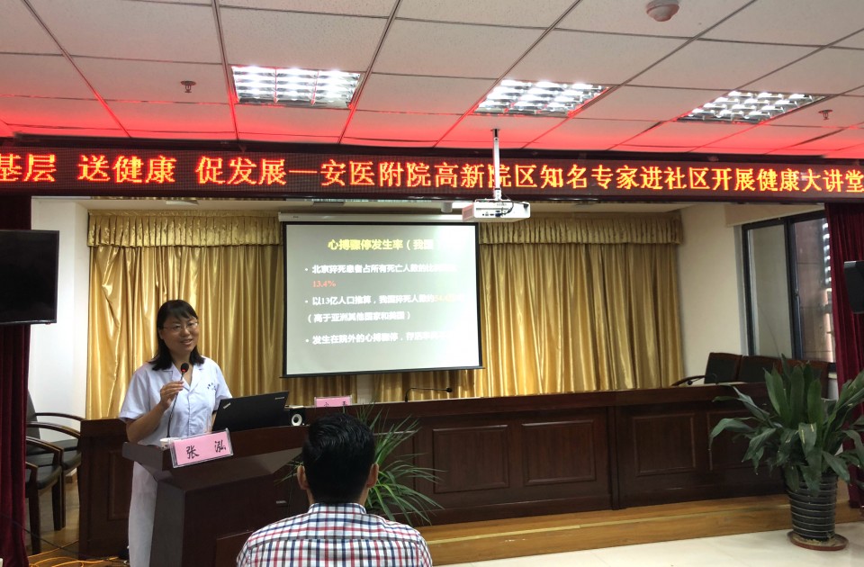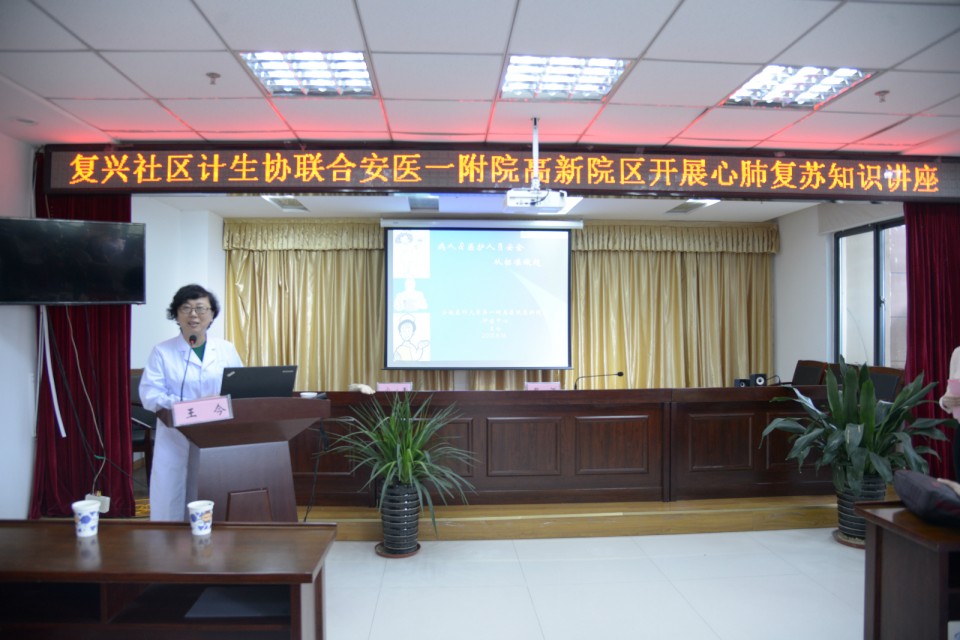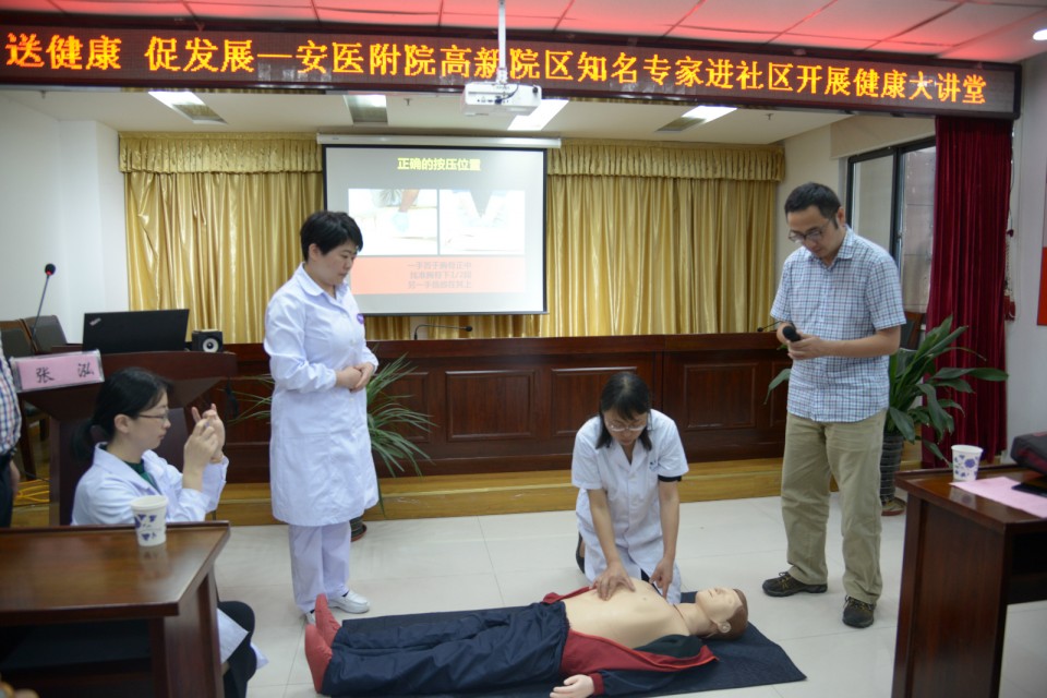 “智慧点亮生活”。时值我国第十四个科普日之际,为向基层医务工作者和居民普及心肺复苏相关知识和技能,向社区护理人员传播PICC规范化护理知识,高新院区门诊部于9月16日组织知名医护专家前往高新区复兴社区居委会,开展“专家零距离”系列健康科普讲座。高新院区副院长、医院急诊医学科学科带头人张泓主任向现场听众深入浅出、鲜活生动地讲解了心搏骤停和心肺复苏的概念,心博骤停的病因以及诊断;并结合在模型上演示操作,向大家传授如何实施高质量的心肺复苏。现场100余名听众个个全神贯注,互动热烈。最后的心肺复苏实操环节,在张泓主任和她的团队悉心指导下,不仅社区医护人员一展身手,更有很多居民跃跃欲试。社区微信直播平台同时进行了全程直播。通过培训,大家一致认为,普及健康知识,提高健康素养,心肺复苏这项急救技能大家都应、并且能够掌握。