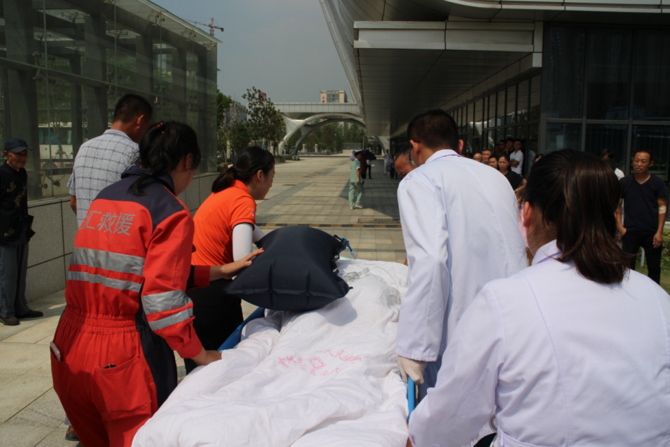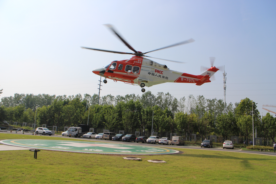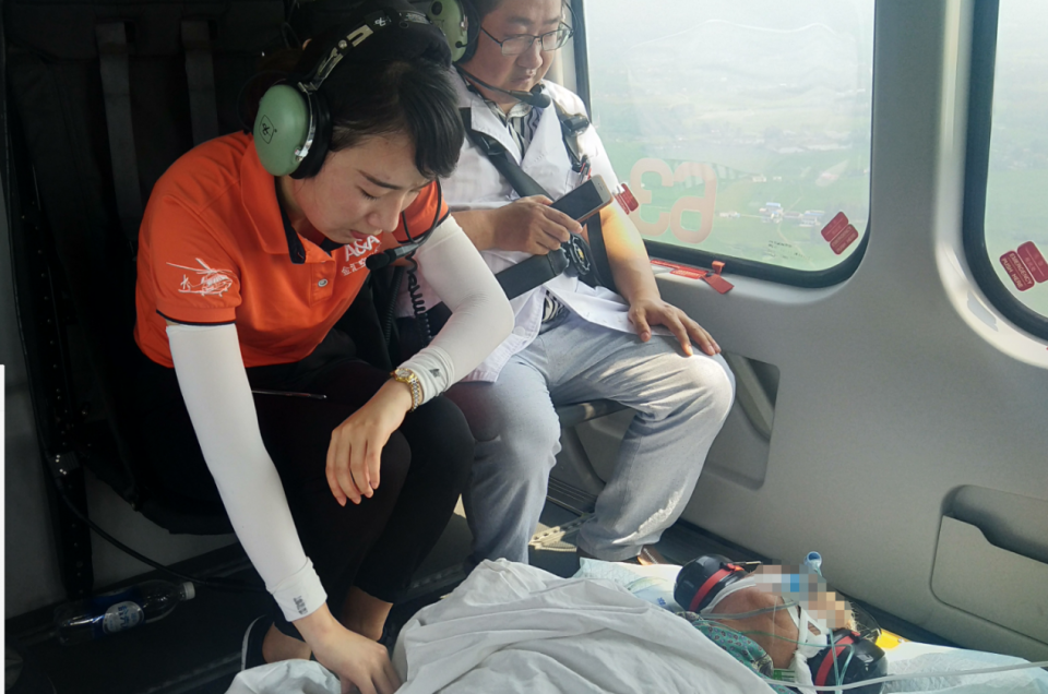 从霍邱县第二人民医院到安医大一附院全程150多公里,若用救护车转运需要两个多小时,而使用救援直升机进行转运可以争取更多的有效治疗时间,减少转运过程中的颠簸。