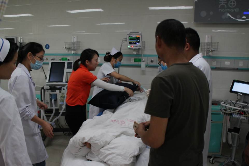10:27,经过37分钟的飞行,救援直升机抵达安医大一附院高新院区,地面医护人员立即将患者通过医院绿色通道送入重症监护室。
