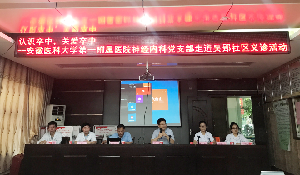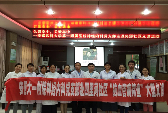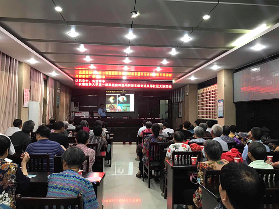 此次活动的主题为“认识卒中 关爱卒中”,汪凯主任向现场居民传达了全体医护人员的健康祝福,尹长林党支部书记表示,安医大一附院党员将始终坚持服务百姓的宗旨,为百姓健康保驾护航。田仰华副主任医师为居民进行了脑卒中科普知识讲座,义诊人员进一步介绍了安医大一附院在四里河卫生服务中心开展的国家“脑防委”脑卒中高危人群筛查和干预项目,为现场居民填写相关问卷调查。