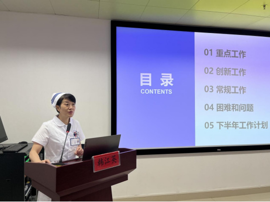 会上,韩江英对照医院2024年度工作要点和年初护理部工作计划,从护理管理、质量安全、优质护理、科研创新等方面汇报了上半年高新院区护理工作完成情况及存在困难,并就下半年重点工作内容进行了规划。接着,9位护理质量管理小组组长立足项目组职责,依次反馈重点工作推进情况及现阶段需协调解决问题。