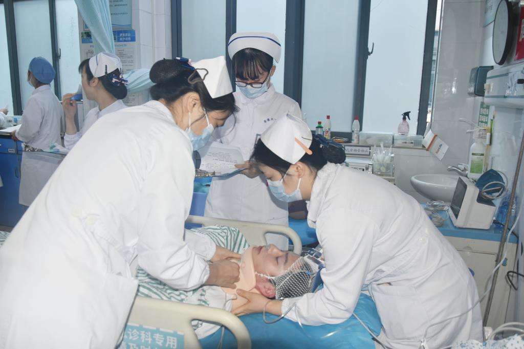 下午16:30,陈明卫宣布演练开始,急诊科接到120电话,肥西县上派镇发生交通事故,现场共有多名群众不同程度受伤,其中2人伤势严重,均需紧急救治,约10分钟后到达。急诊科护士迅速反应,逐级汇报,护理部立即启动突发事件护理应急预案,进行护理人力资源的紧急调配,根据现场情况调配耳鼻喉头颈外科、胃肠及疝病外科、神经内科、儿童创伤骨科、重症医学科、急诊综合病区等9个科室不同层级护士进行支援,配合急诊科及医务部、后勤安保部、院感办等完成对伤员的分诊、抢救、转运等。17:05分,应急演练结束。