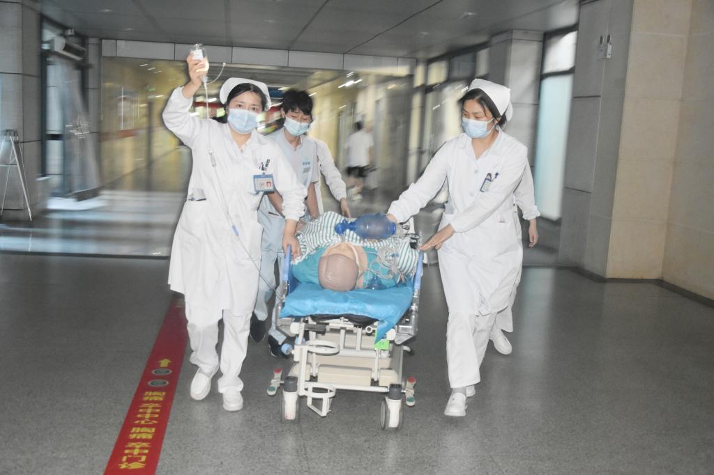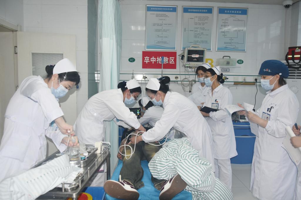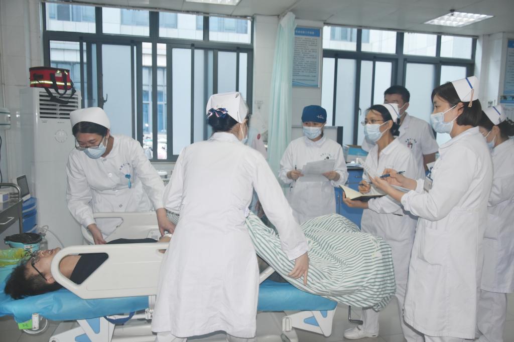 演练案例为肥西县上派镇发生交通事故,有多名伤员由120送至南区急诊科,经过急诊科检伤分诊后有2名重症患者需紧急抢救。
