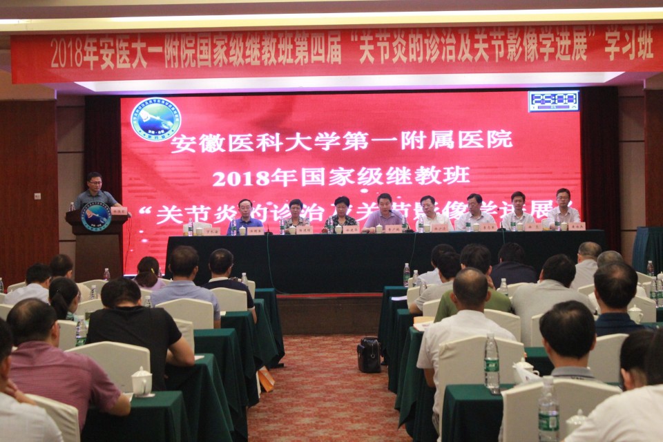 2018年7月27-7月29日,由我院风湿免疫科主办的第四届“关节炎的诊治及关节影像学进展”国家级继教班在合肥召开,副院长费广鹤出席会议并致欢迎词,会议由我院风湿免疫科副主任徐胜前教授主持。