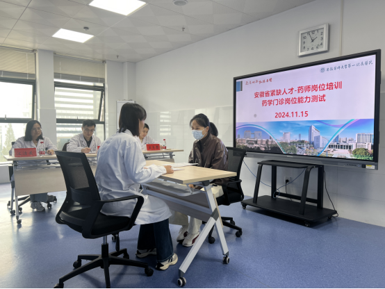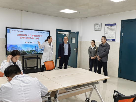 11月15日下午,医院在安徽医科大学实验教学中心7楼OSCE考站开展“2024年安徽省紧缺人才——药师岗位培训项目”第二批岗位能力测试,来自全省培训基地的19名药学门诊岗位学员参加考核。安徽省卫健委药政与食品安全监测处处长韩伟、副处长方静莅临现场指导考核工作。