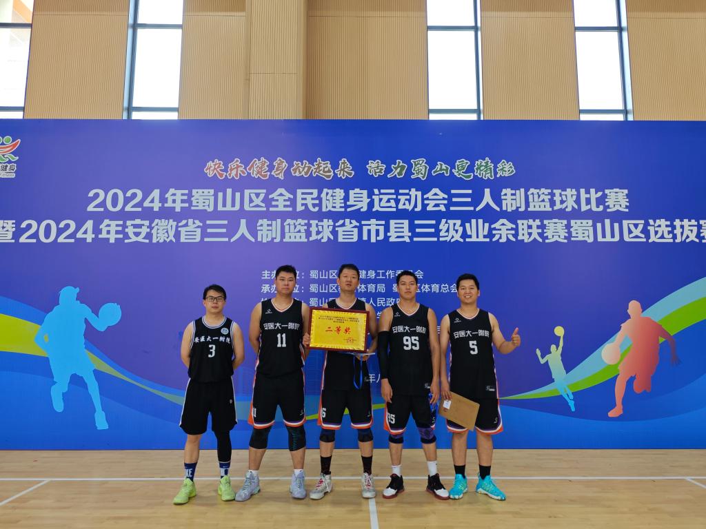 为推动全民健身活动的开展,丰富职工业余生活,蜀山区举办“2024年蜀山区三人制篮球比赛暨2024年安徽省三人制篮球省市县三级业余联赛选拔赛”.我院工会篮球协会积极参赛,勇夺三人制篮球比赛男子组团体第二名。
