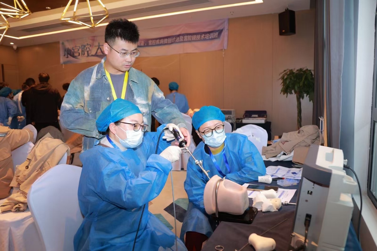 11月16日至17日,本次会议同期举办了“第三届宫腔疾病微创诊治及宫腔镜技术培训班”。此次培训旨在提升妇科医师的宫腔镜技术水平,推动微创技术在宫腔疾病诊治中的普及和应用。培训通过丰富多样的实操方式开展,包HSTTY宫腔镜培训系列课程涵盖视野定位、手眼协调等培训,以及结合VR设备进行虚拟实境训练等,极大地提高了学员的动手能力和操作信心。同时,培训现场提供了多种常用器械进行实操练习,如一次性宫腔镜、冷刀检查镜、电切镜和宫内刨削系统,全面覆盖了宫腔镜技术的不同应用场景,帮助学员深入掌握操作要领。