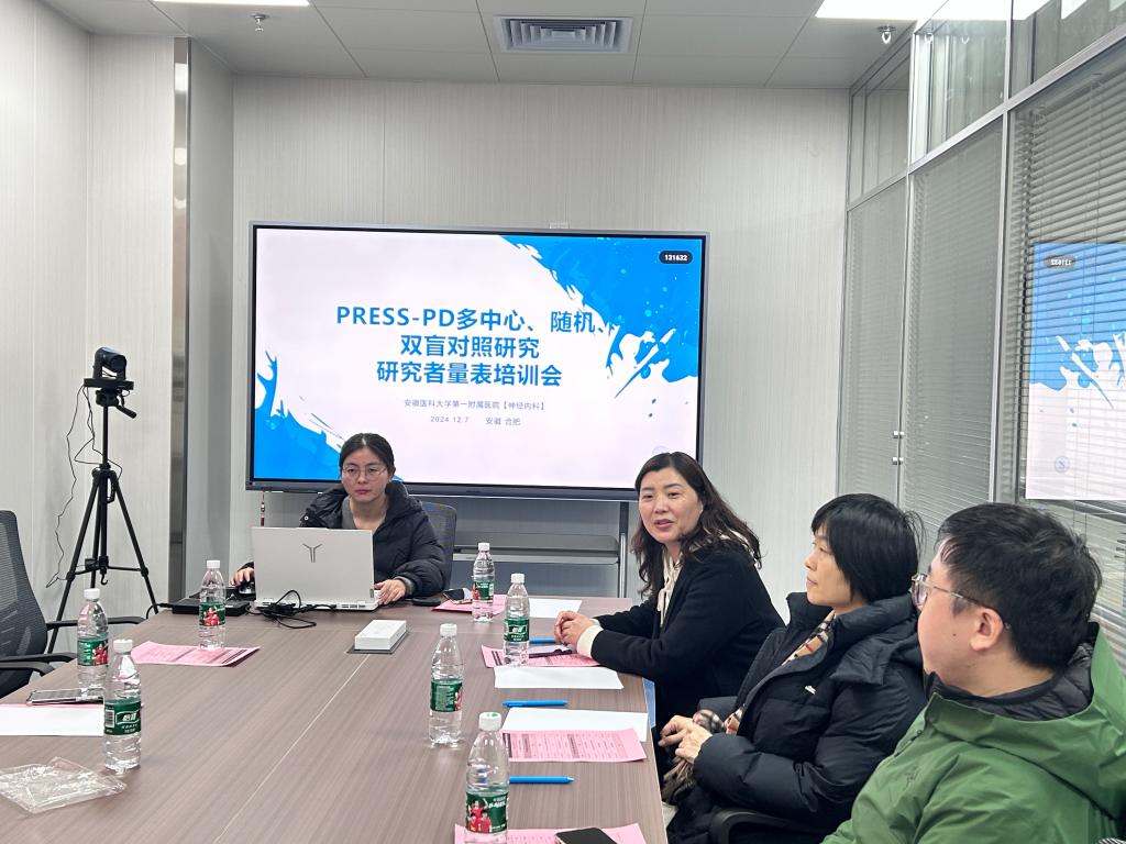 项目总负责人胡盼盼教授随后就“PRESS-PD多中心、随机双盲、对照研究”项目作的研究团队组成、项目背景、前期研究成果、项目方案要点进行了介绍,并对项目具体分工、研究方案基本流程、研究计划的时间节点及预期成果进行了详细说明。