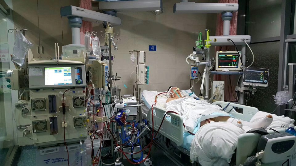 小孔入住当地医院ICU后病情仍在迅速恶化,持续深昏迷,并出现多脏器功能衰竭。2天后,当地市医院ICU与我院急诊科联系,小孔被转入我院EICU,此时的小孔深昏迷状态(格拉斯哥评分3分)、急性呼吸窘迫综合征、肾衰无尿、休克,止凝血功能障碍。EICU团队迅速展开各项抢救措施——有创血流动力学(PiCCO)监测、全身亚低温、呼吸机通气、床旁肾脏替代……,眼看着呼吸支持条件已很高,氧合仍无法维持,全身缺氧状态无法纠正,小孔病情继续恶化。