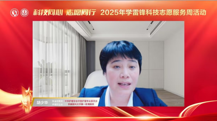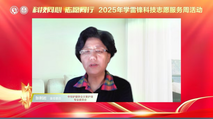 中华护理学会灾害护理专业委员会副主任委员、我院护理部主任胡少华主持活动开幕式。中华护理学会灾害护理专委会主任委员张利岩在开场致辞中基于我国灾害救援面临的新形势,阐释了通过灾害科普宣传提升公众自救互救技能,提升全民自救互救素养的重大意义。她强调此次活动紧紧围绕《中国科协宣传文化部关于举办2025年学雷锋科技志愿服务周的通知》文件要求,在中华护理学会科技志愿领导小组的统一领导与总体指挥下开展。她介绍此次活动具有专家阵容“专而强”、内容“实而精”、形式上“小而美”的三个特点,号召大家以此次活动为契机,赓续传承雷锋精神的时代担当,为提升护理科技志愿服务的影响力和引导力作出更多贡献。