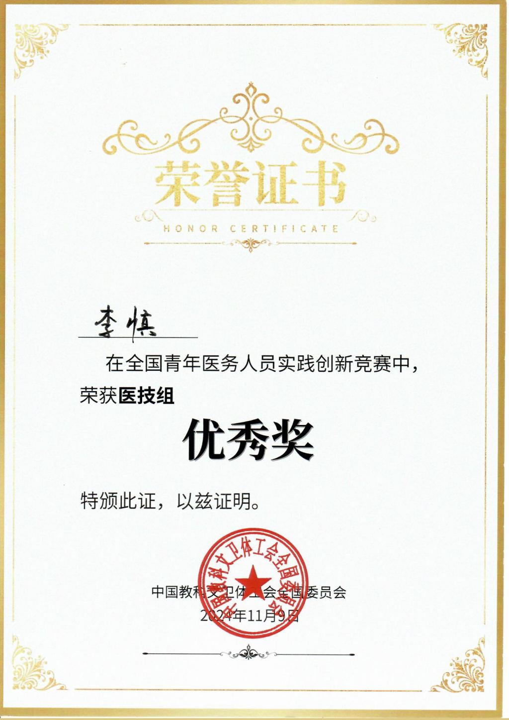 日前,中国教科文卫体工会全国委员会公布了全国青年医务人员实践创新竞赛评奖情况,我院女职工李慎同志申报参评的“一种泌尿外科术后裤的设计与应用”项目,荣获医技组优秀奖。