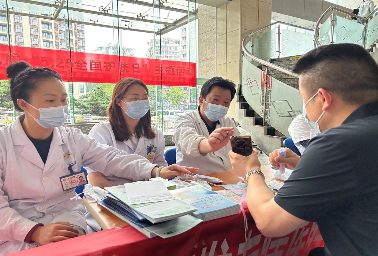 在第十九届全国护肤日来临之际,为普及科学护肤知识,提高群众对皮肤问题的重视,让更多人了解正确且科学的护肤5月23日,安徽省医师协会皮肤科医师分会与我院皮肤科共同发起的“关爱银龄肌肤,守护幸福时光”义诊科普宣教活动,在科教大楼门诊大厅举办。