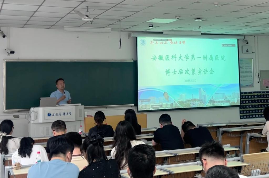 为贯彻落实安徽省《关于深入推进万名博士后聚江淮若干措施》文件精神,进一步扩大医院博士后流动站及工作站的招聘规模,提高博士后研究人员招聘质量,加大医院博士后站点的知名度及影响力,5月30日下午,医院联合安徽医科大学组织开展2025年“博士后招才引智高校行”专场招聘宣讲会。