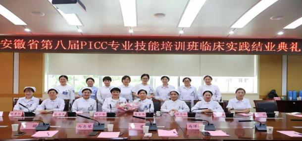 6月4日上午,安徽省第八届 PICC 专业技能培训班临床实践结业典礼在我院医学保健中心二楼会议室举行。护理部胡少华主任、相关专科护士长、总带教老师以及全体学员参加会议,基地负责人高金华护士长主持会议。